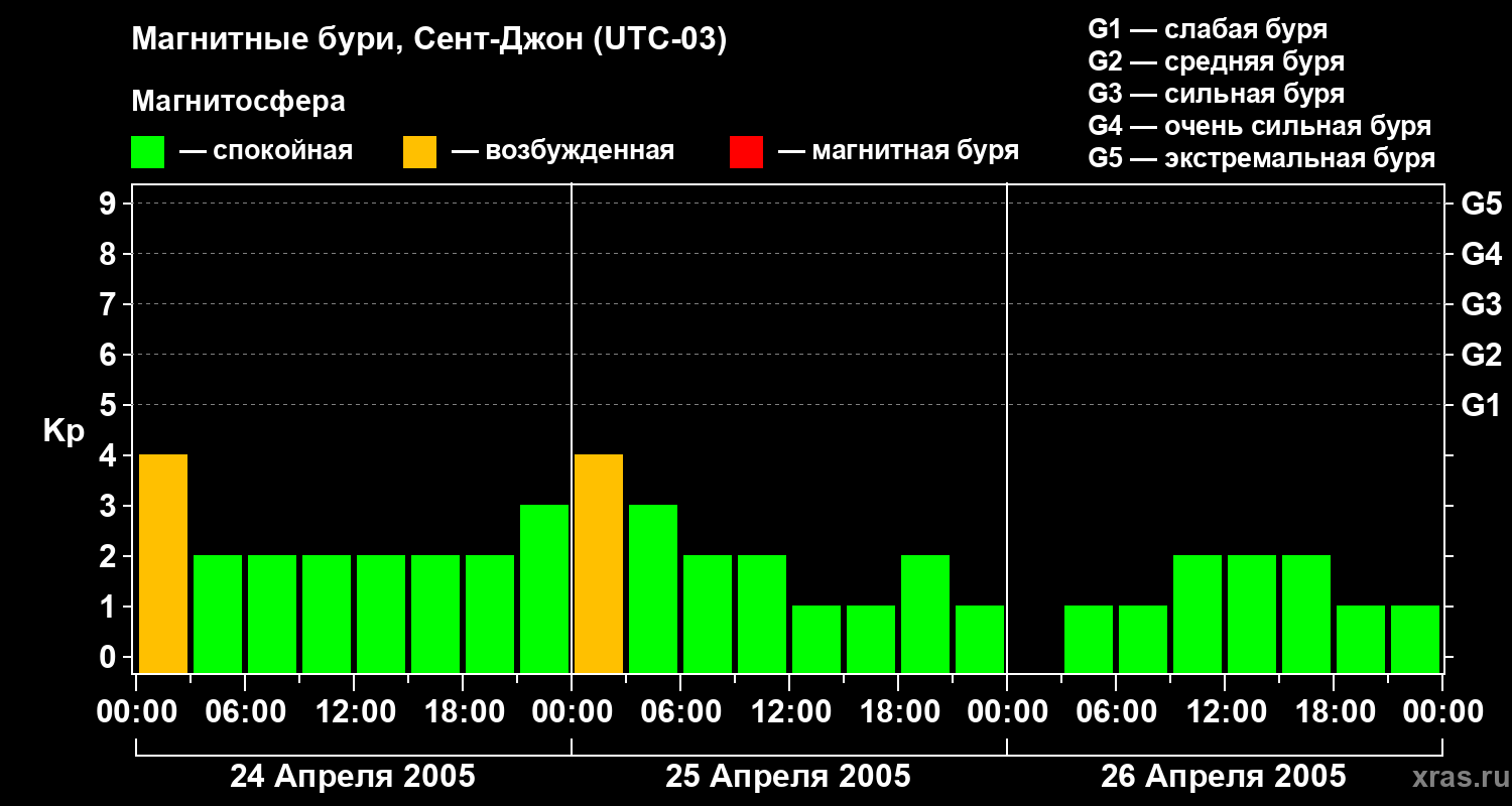 Магнитные бури в Сент-Джоне 26 апреля 2005 года