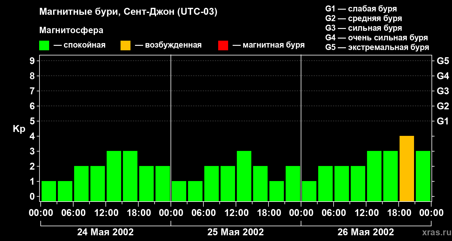 Магнитные бури в Сент-Джоне 26 мая 2002 года