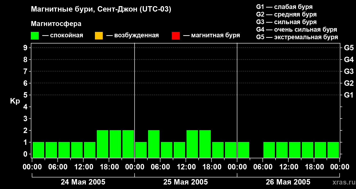 Магнитные бури в Сент-Джоне 26 мая 2005 года