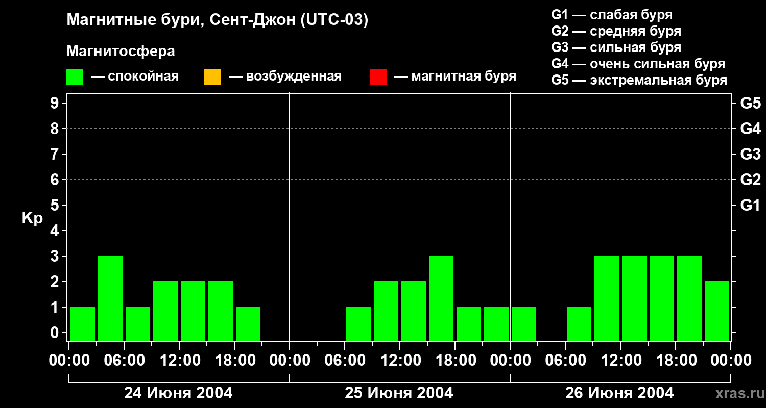 Магнитные бури в Сент-Джоне 26 июня 2004 года
