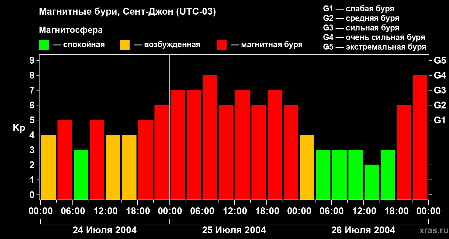 Магнитные бури в Сент-Джоне 26 июля 2004 года