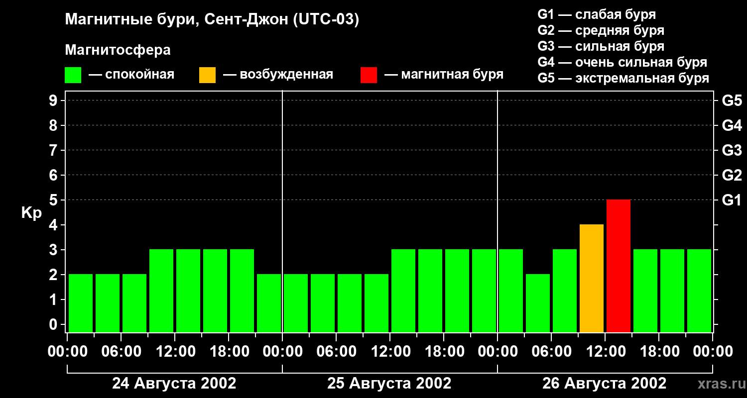 Магнитные бури в Сент-Джоне 26 августа 2002 года