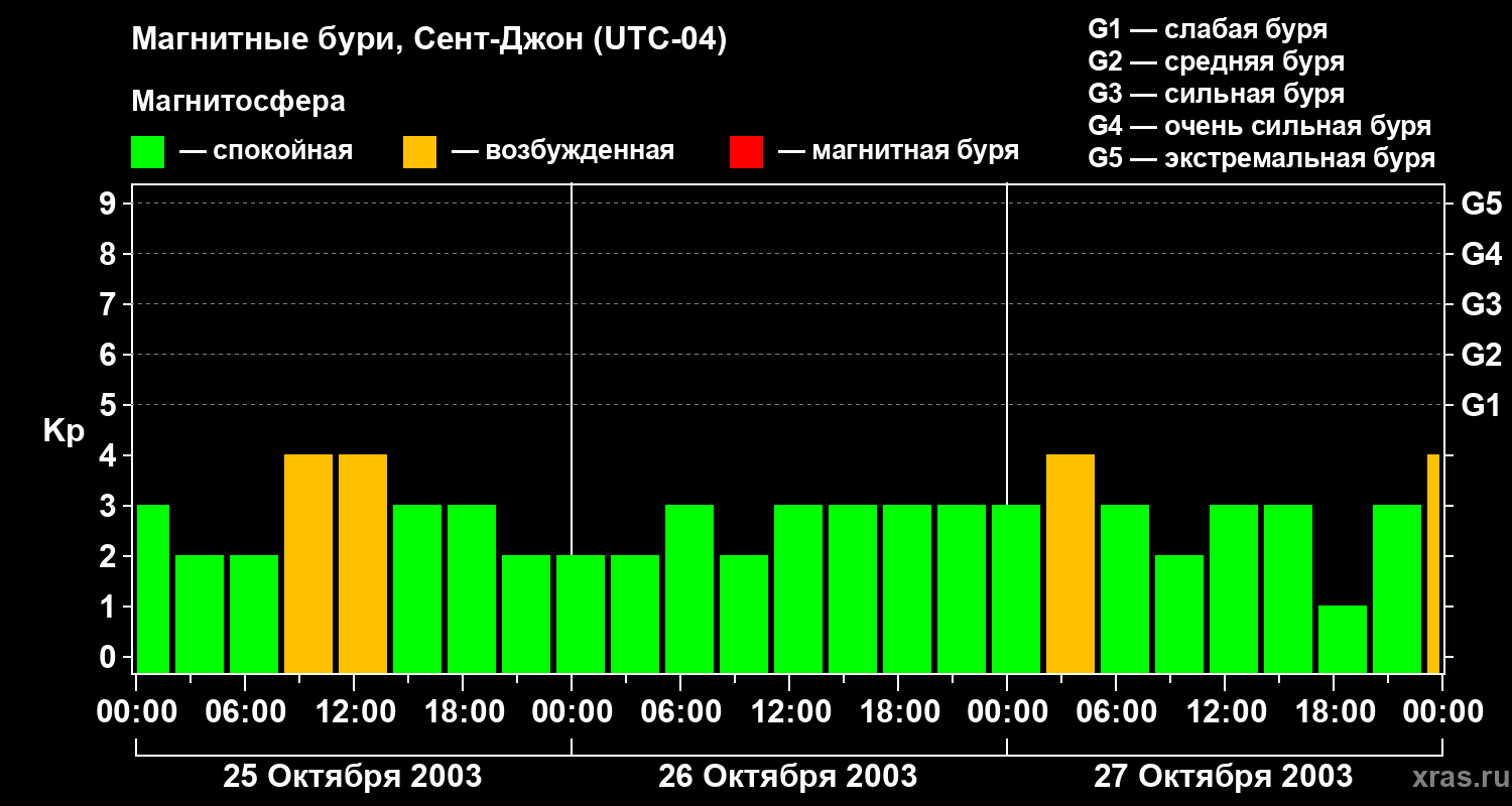 Магнитные бури в Сент-Джоне — 27 октября 2003 года