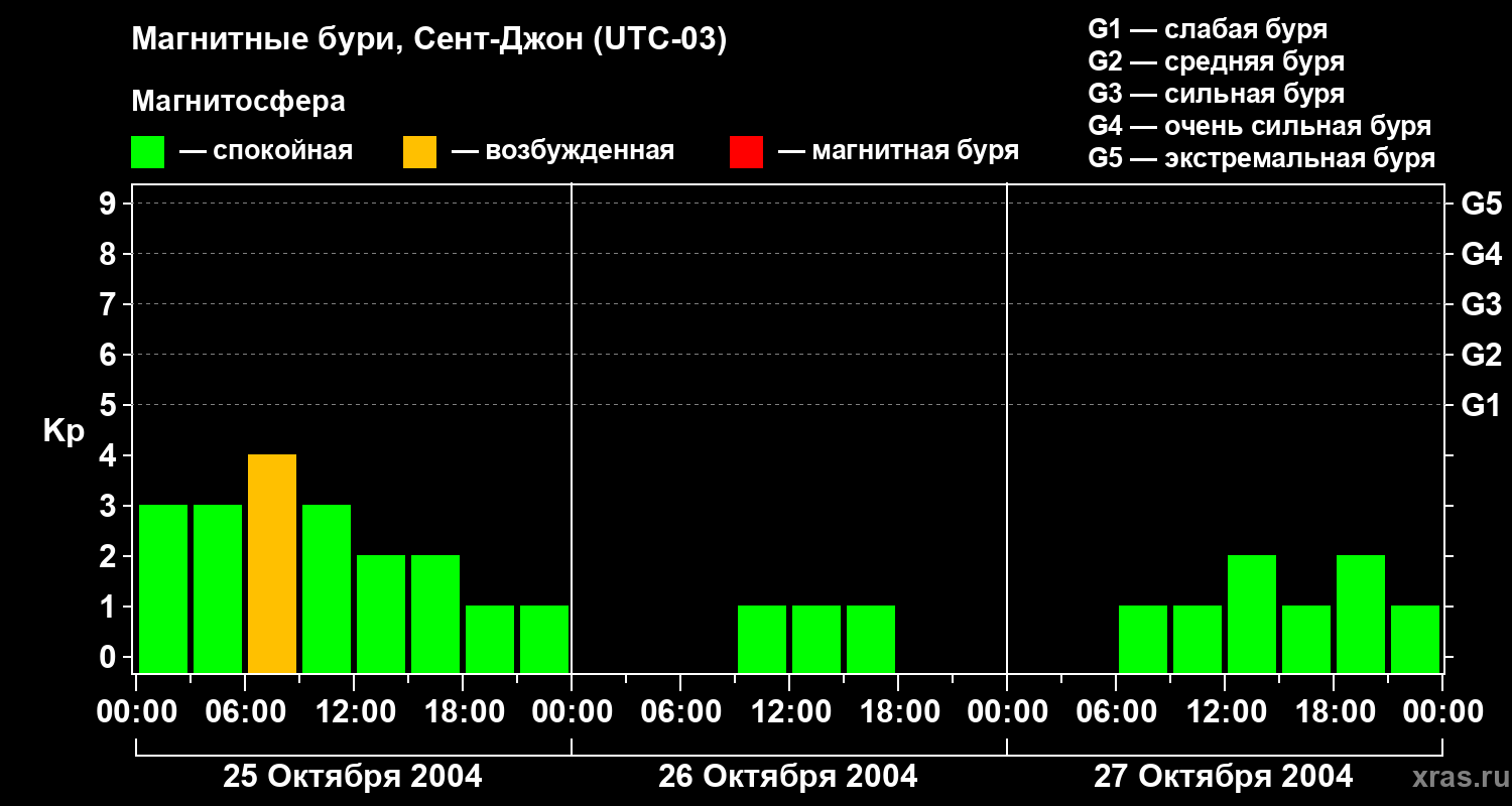Магнитные бури в Сент-Джоне 27 октября 2004 года