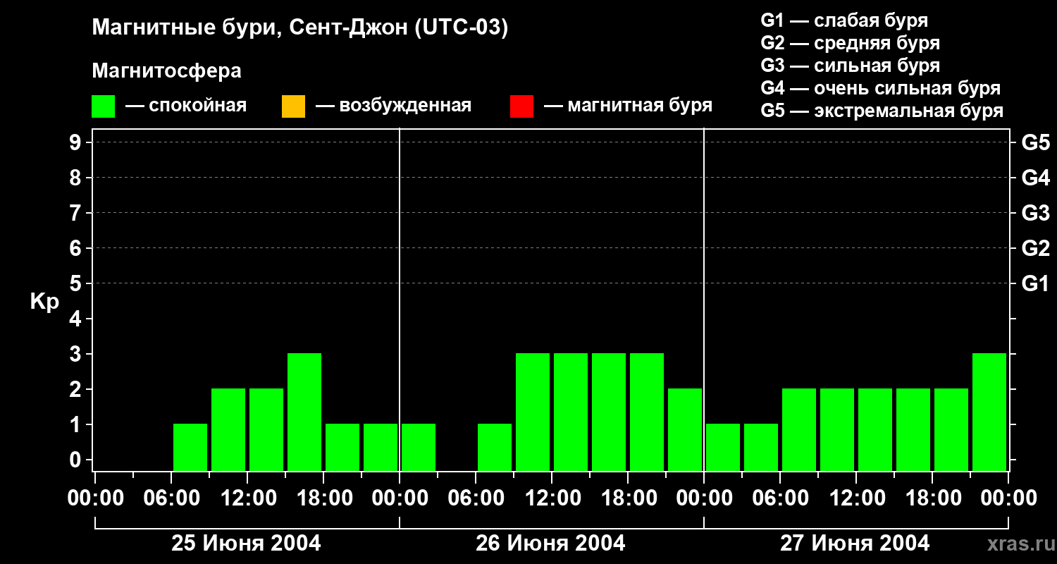 Магнитные бури в Сент-Джоне 27 июня 2004 года