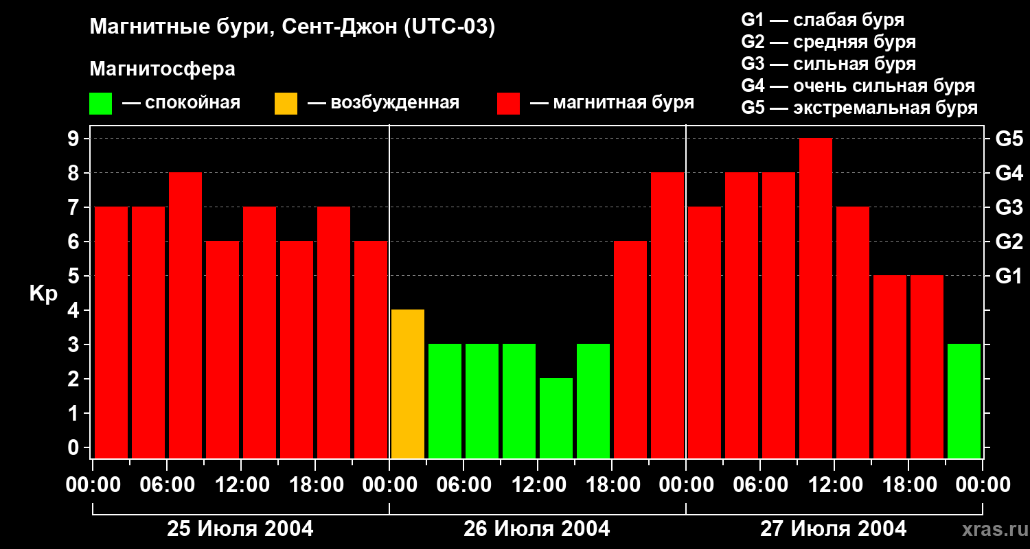 Магнитные бури в Сент-Джоне — 27 июля 2004 года