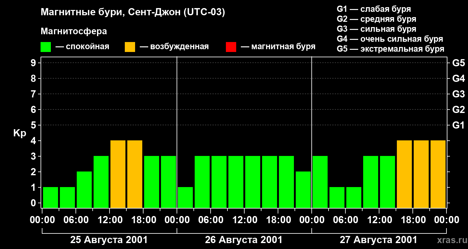 Магнитные бури в Сент-Джоне 27 августа 2001 года