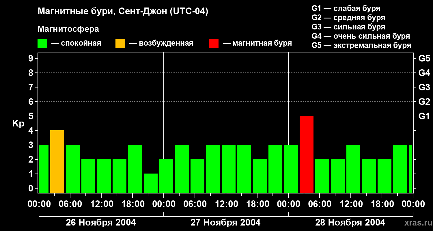 Магнитные бури в Сент-Джоне — 28 ноября 2004 года
