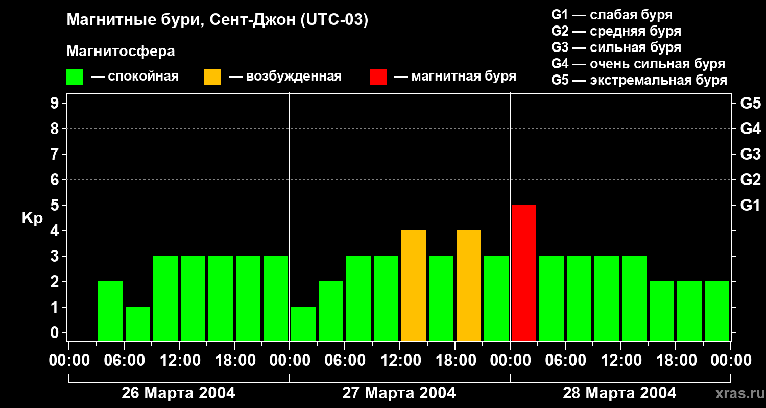 Магнитные бури в Сент-Джоне — 28 марта 2004 года