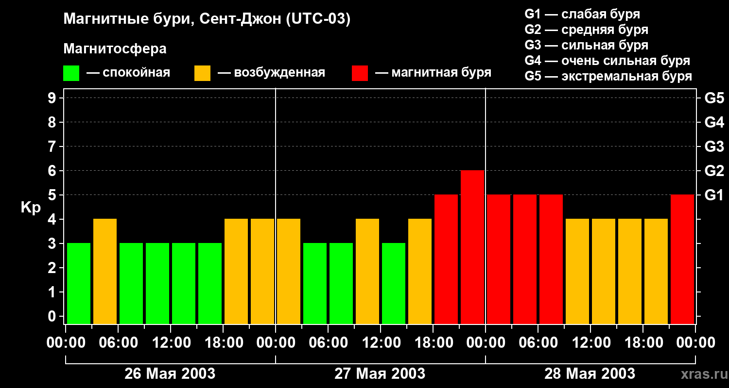 Магнитные бури в Сент-Джоне — 28 мая 2003 года