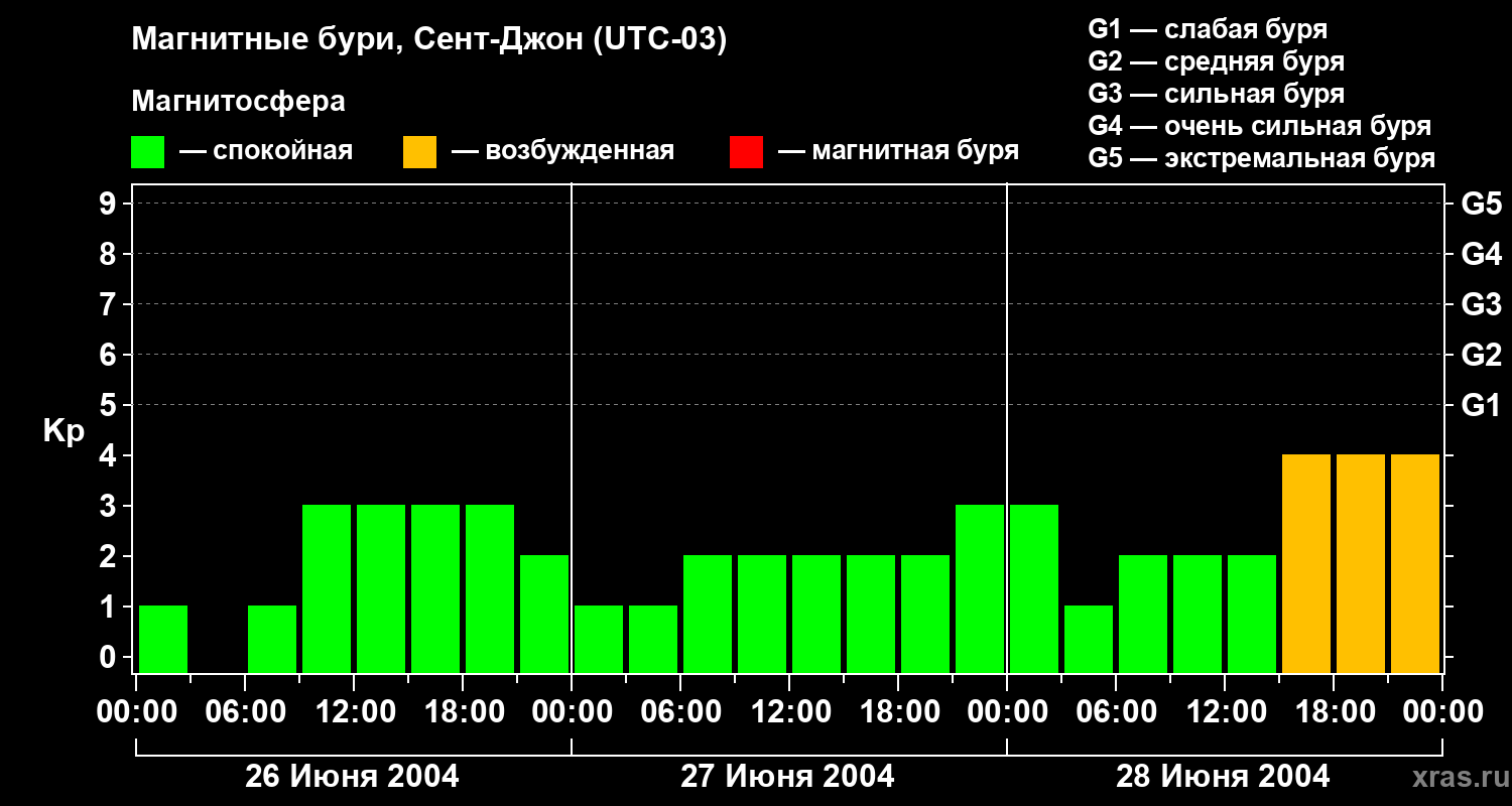 Магнитные бури в Сент-Джоне 28 июня 2004 года