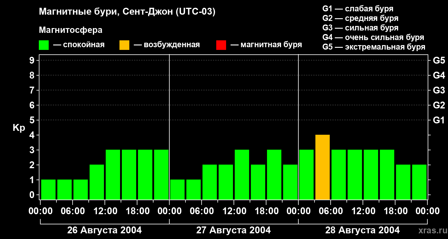 Магнитные бури в Сент-Джоне — 28 августа 2004 года