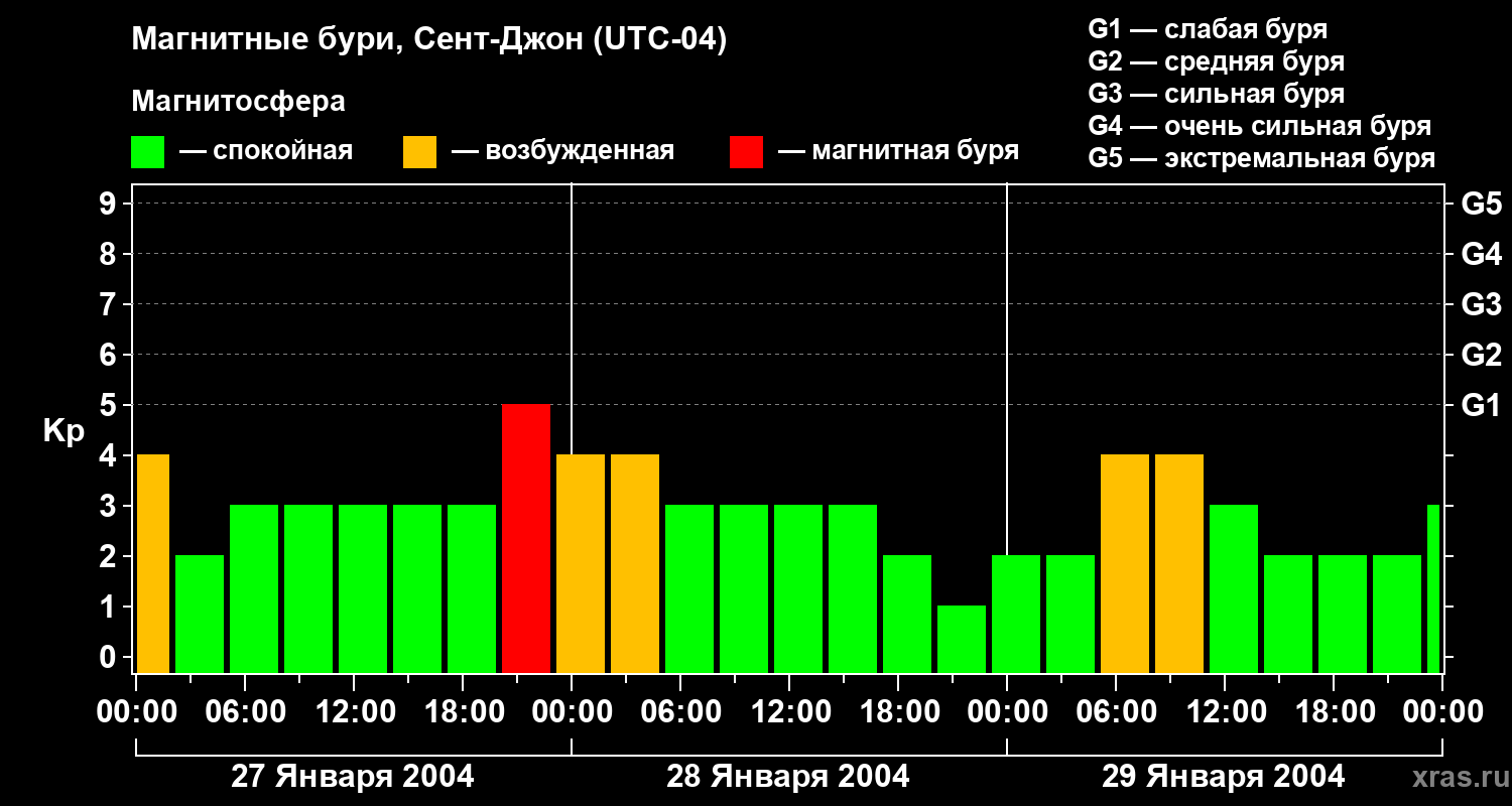 Магнитные бури в Сент-Джоне 29 января 2004 года