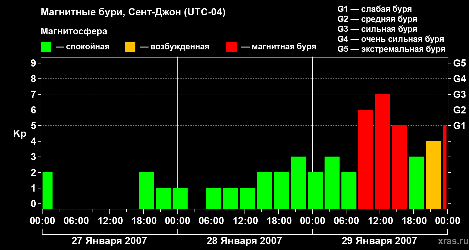 Магнитные бури в Сент-Джоне — 29 января 2007 года