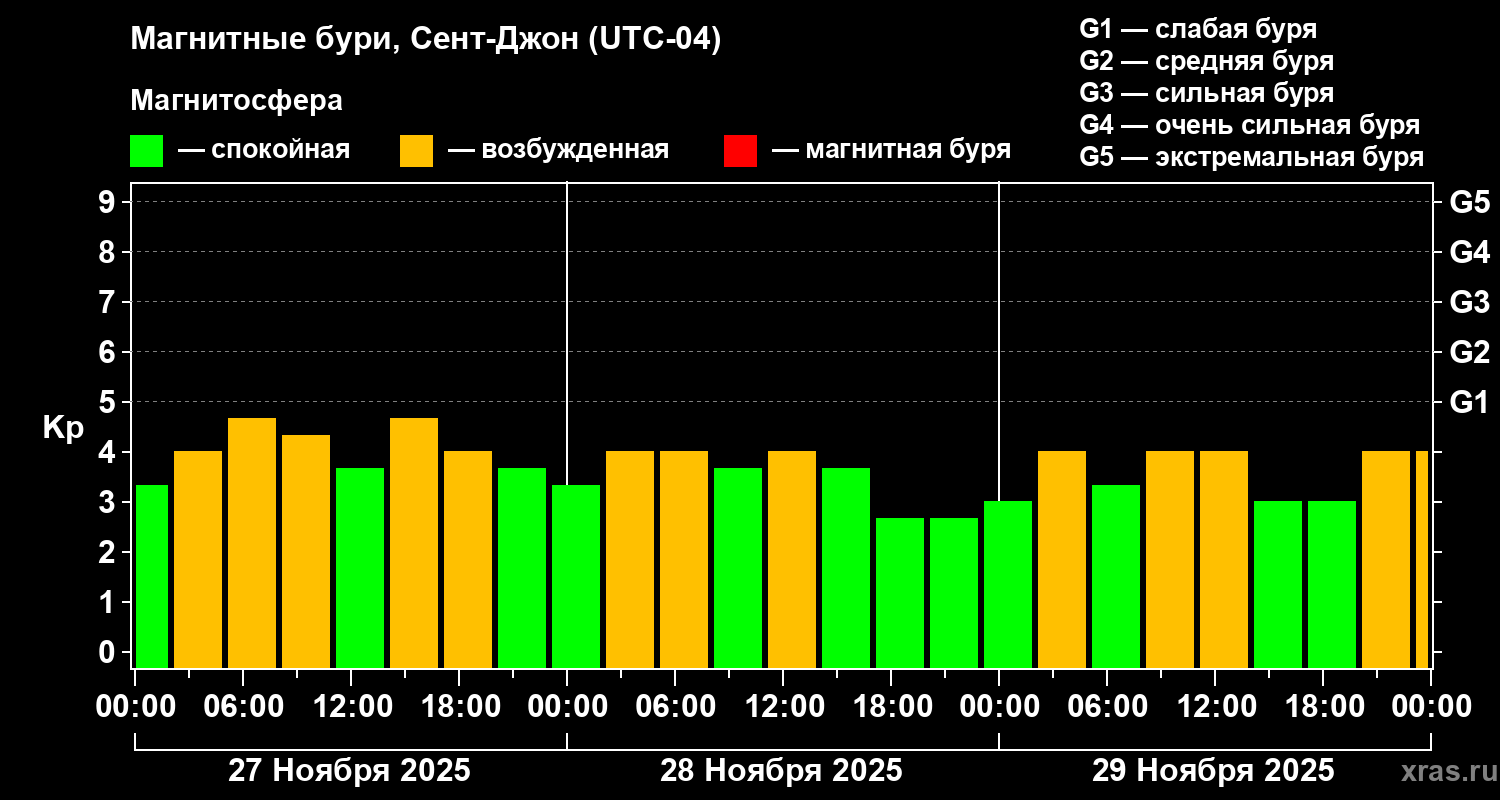 Магнитные бури в Сент-Джоне 29 ноября 2025 года