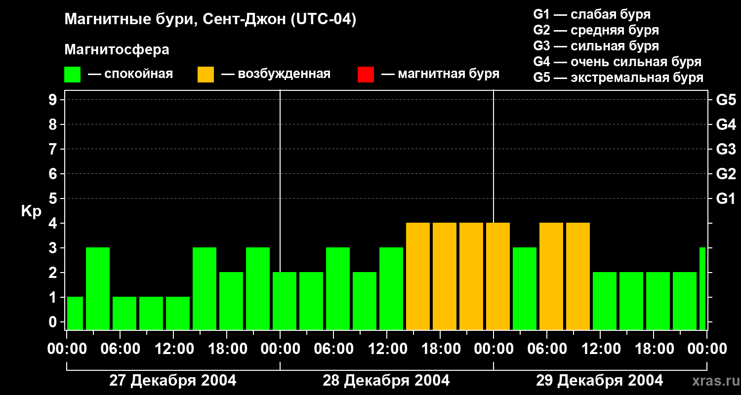 Магнитные бури в Сент-Джоне — 29 декабря 2004 года
