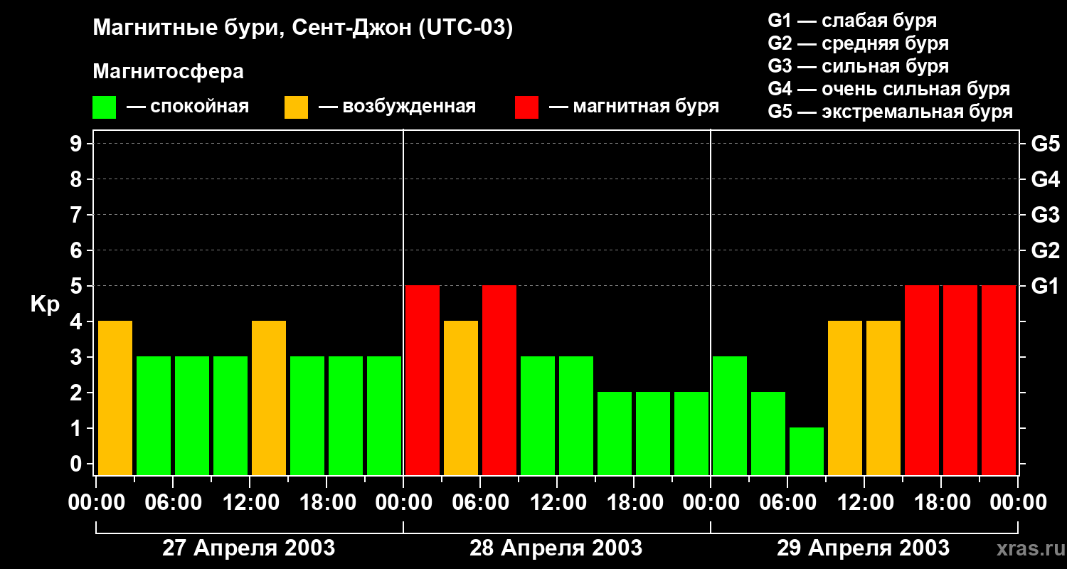 Магнитные бури в Сент-Джоне — 29 апреля 2003 года