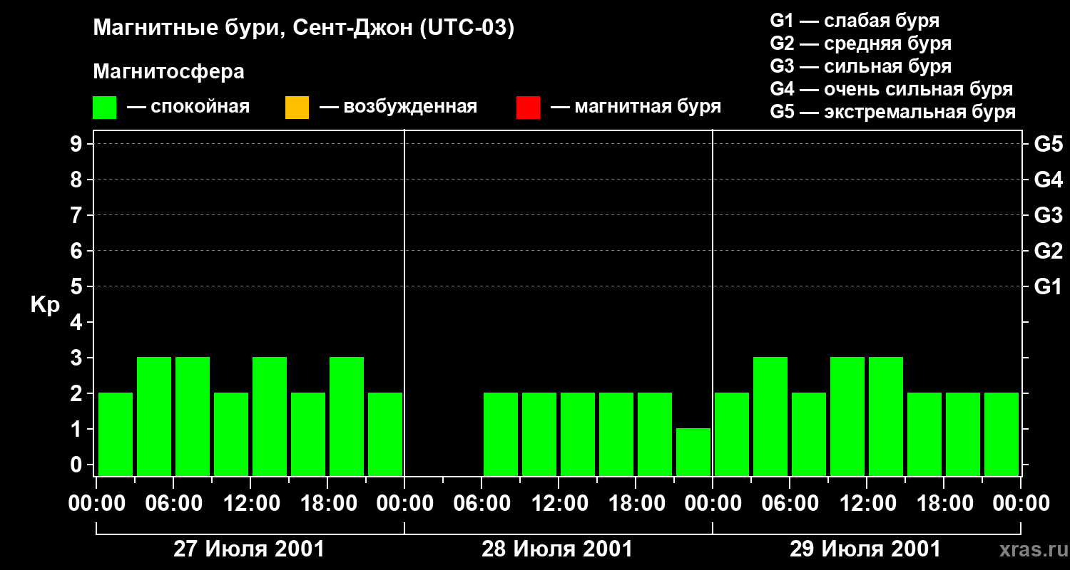 Магнитные бури в Сент-Джоне — 29 июля 2001 года