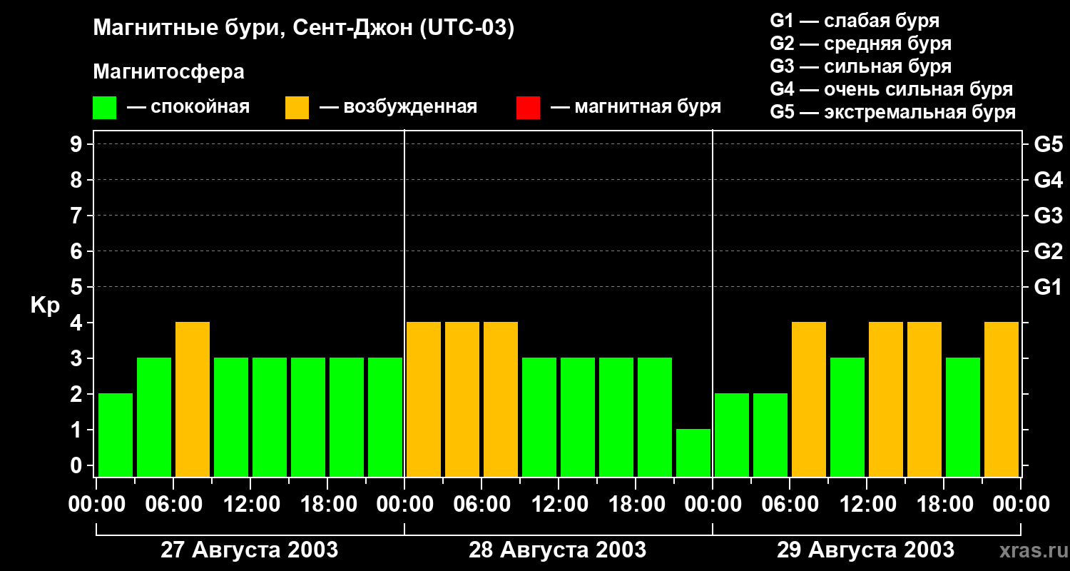 Магнитные бури в Сент-Джоне — 29 августа 2003 года