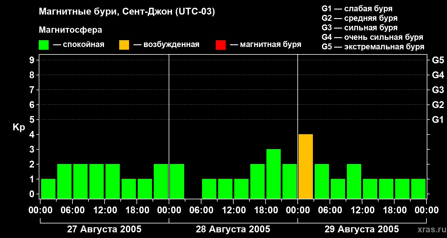 Магнитные бури в Сент-Джоне 29 августа 2005 года