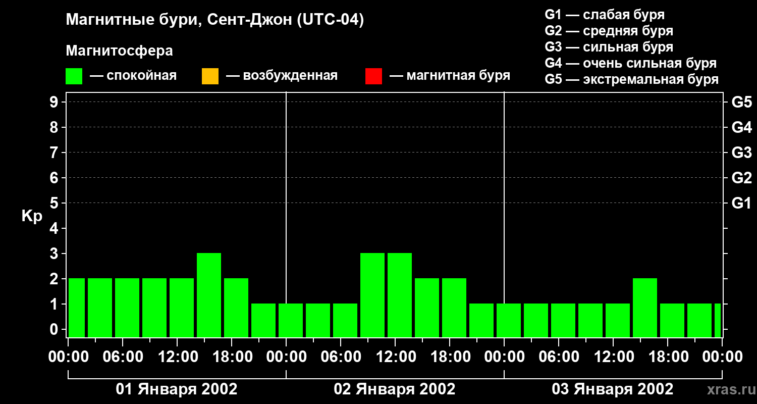 Магнитные бури в Сент-Джоне 3 января 2002 года