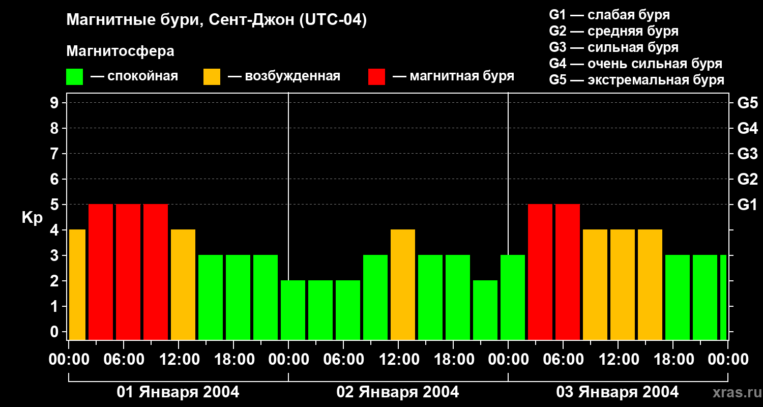 Магнитные бури в Сент-Джоне 3 января 2004 года