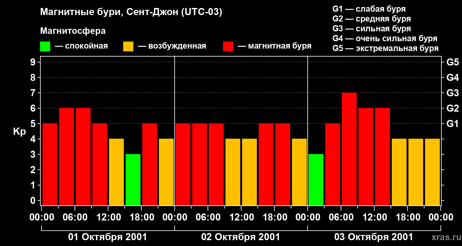 Магнитные бури в Сент-Джоне 3 октября 2001 года