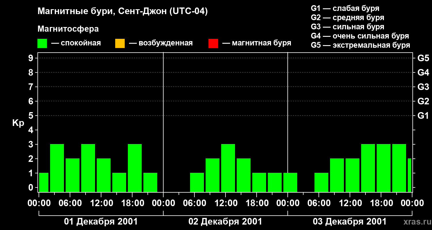 Магнитные бури в Сент-Джоне 3 декабря 2001 года