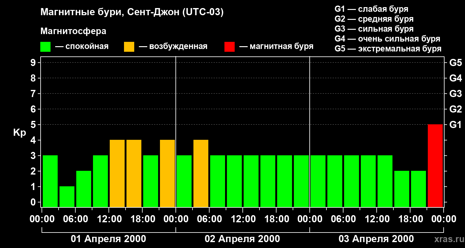 Магнитные бури в Сент-Джоне 3 апреля 2000 года