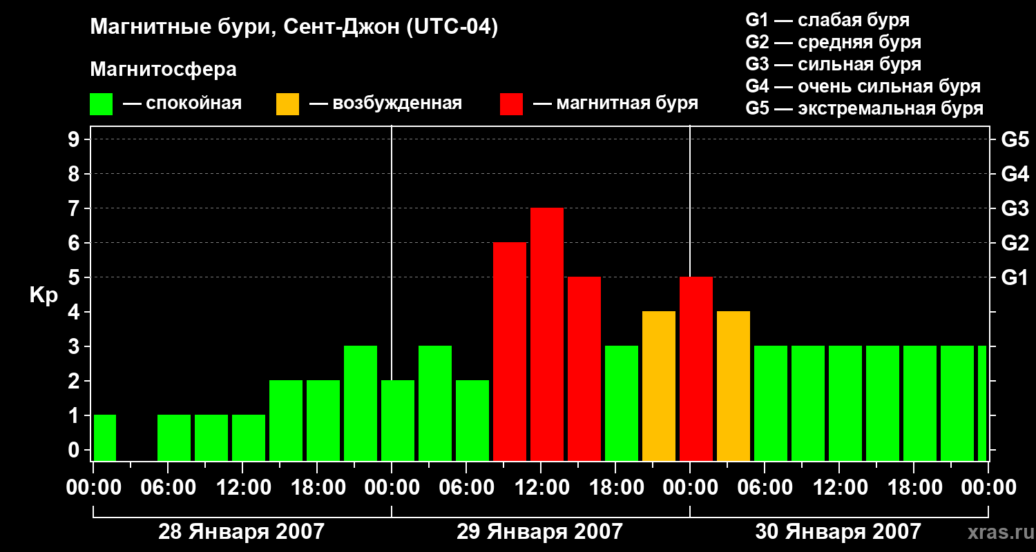Магнитные бури в Сент-Джоне 30 января 2007 года