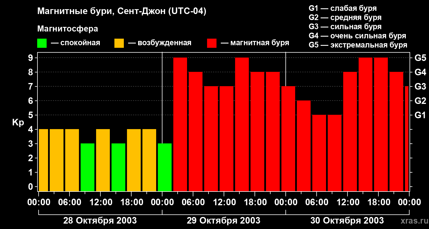Магнитные бури в Сент-Джоне — 30 октября 2003 года