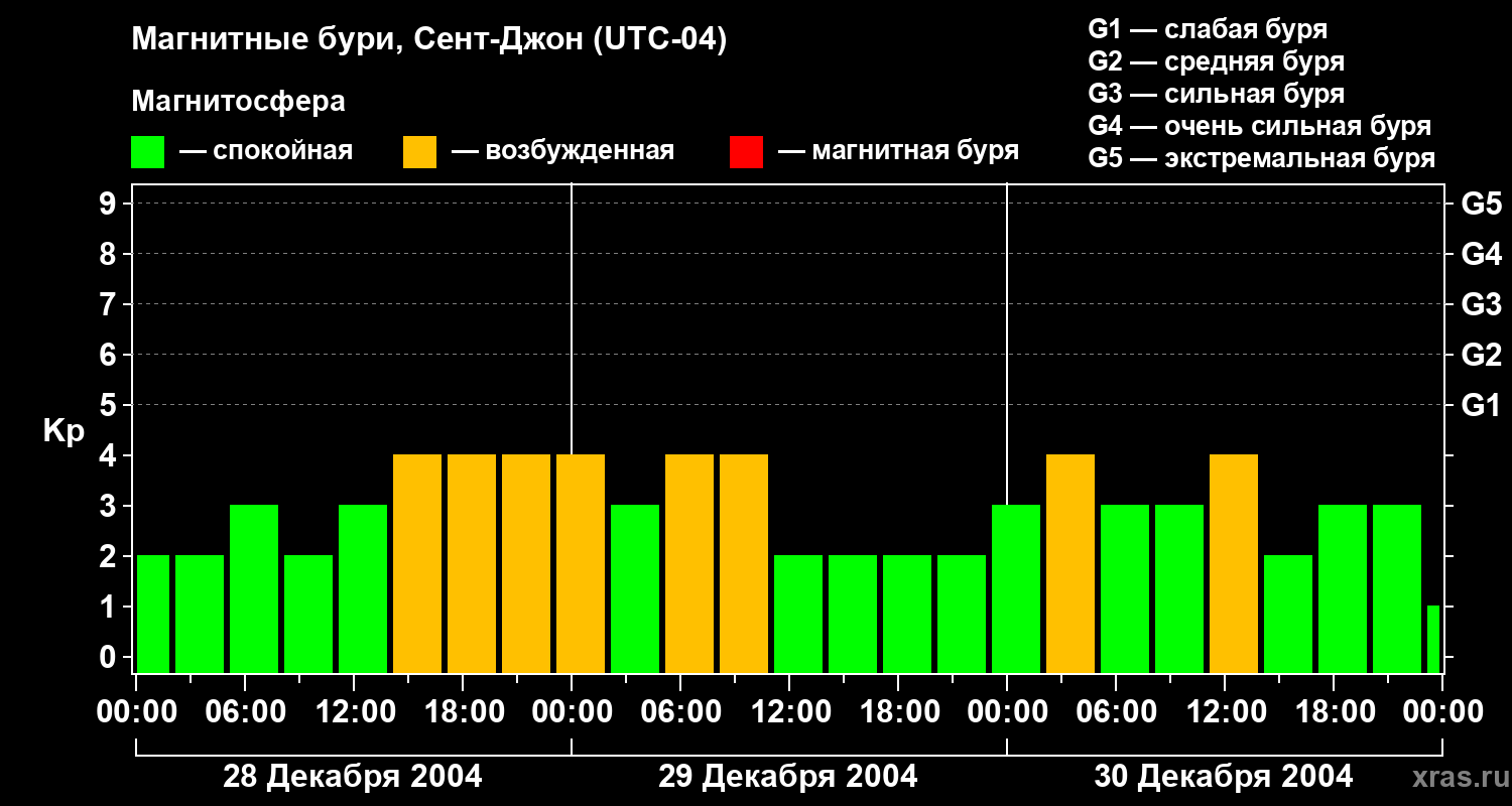 Магнитные бури в Сент-Джоне — 30 декабря 2004 года