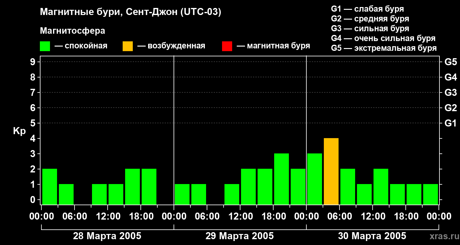 Магнитные бури в Сент-Джоне — 30 марта 2005 года