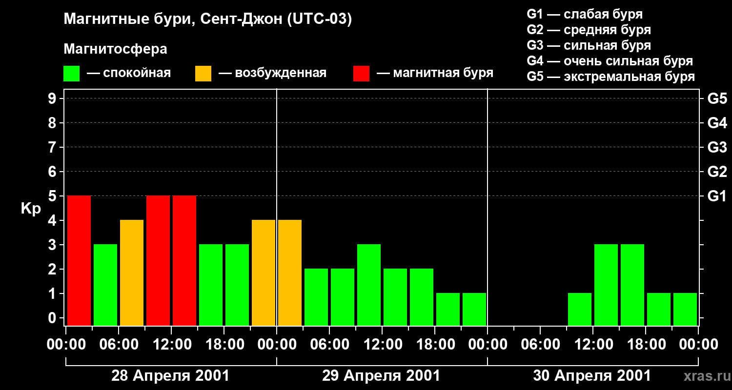 Магнитные бури в Сент-Джоне — 30 апреля 2001 года