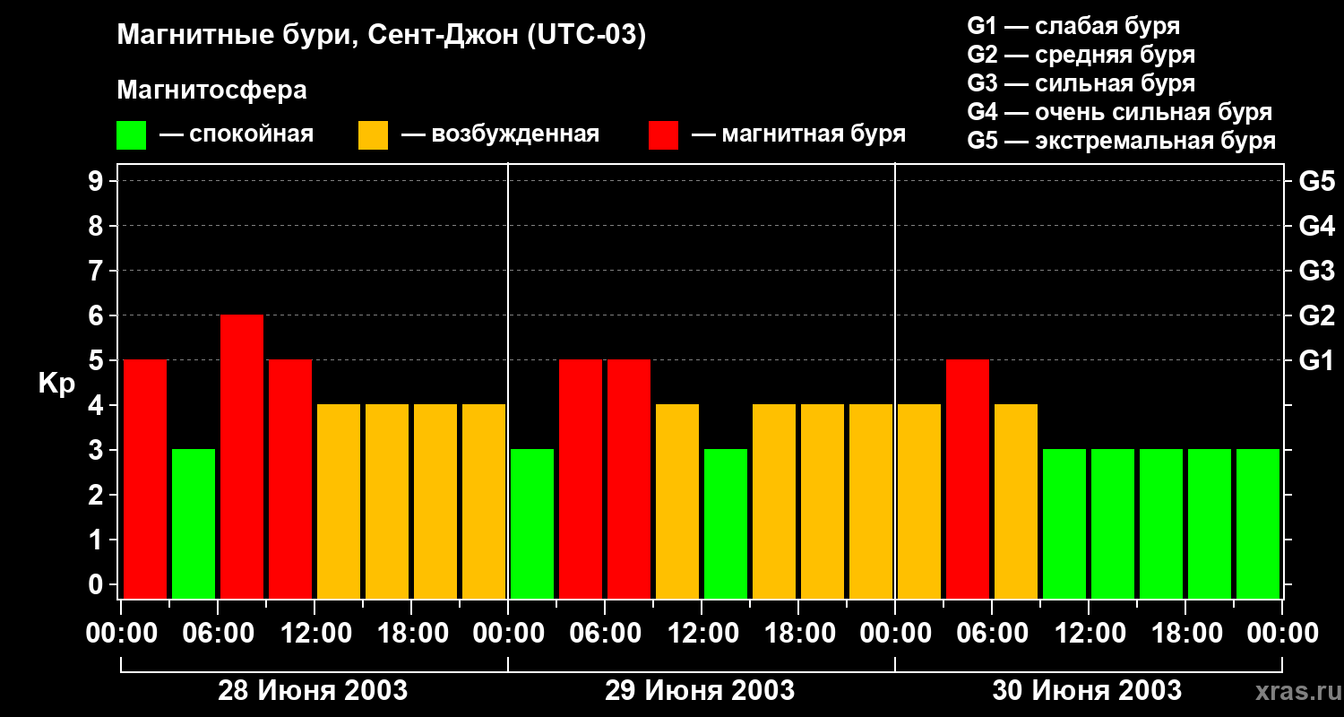 Магнитные бури в Сент-Джоне — 30 июня 2003 года