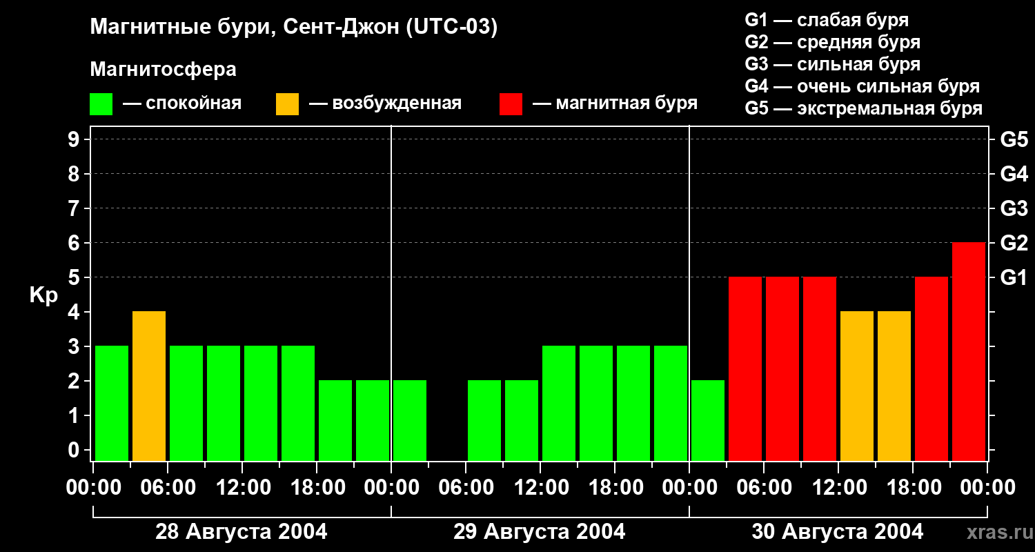 Магнитные бури в Сент-Джоне — 30 августа 2004 года