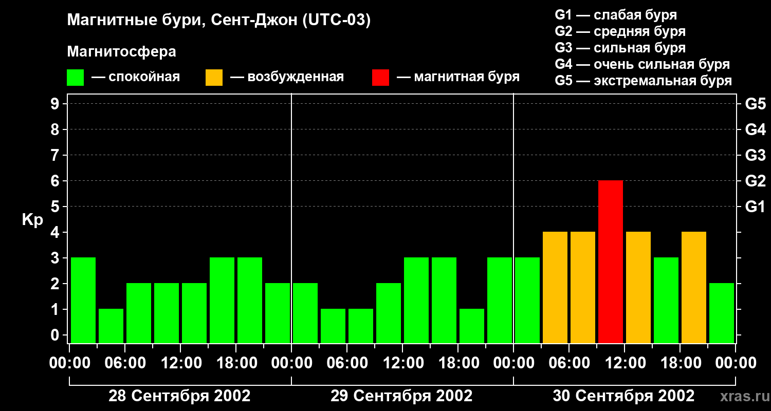 Магнитные бури в Сент-Джоне — 30 сентября 2002 года