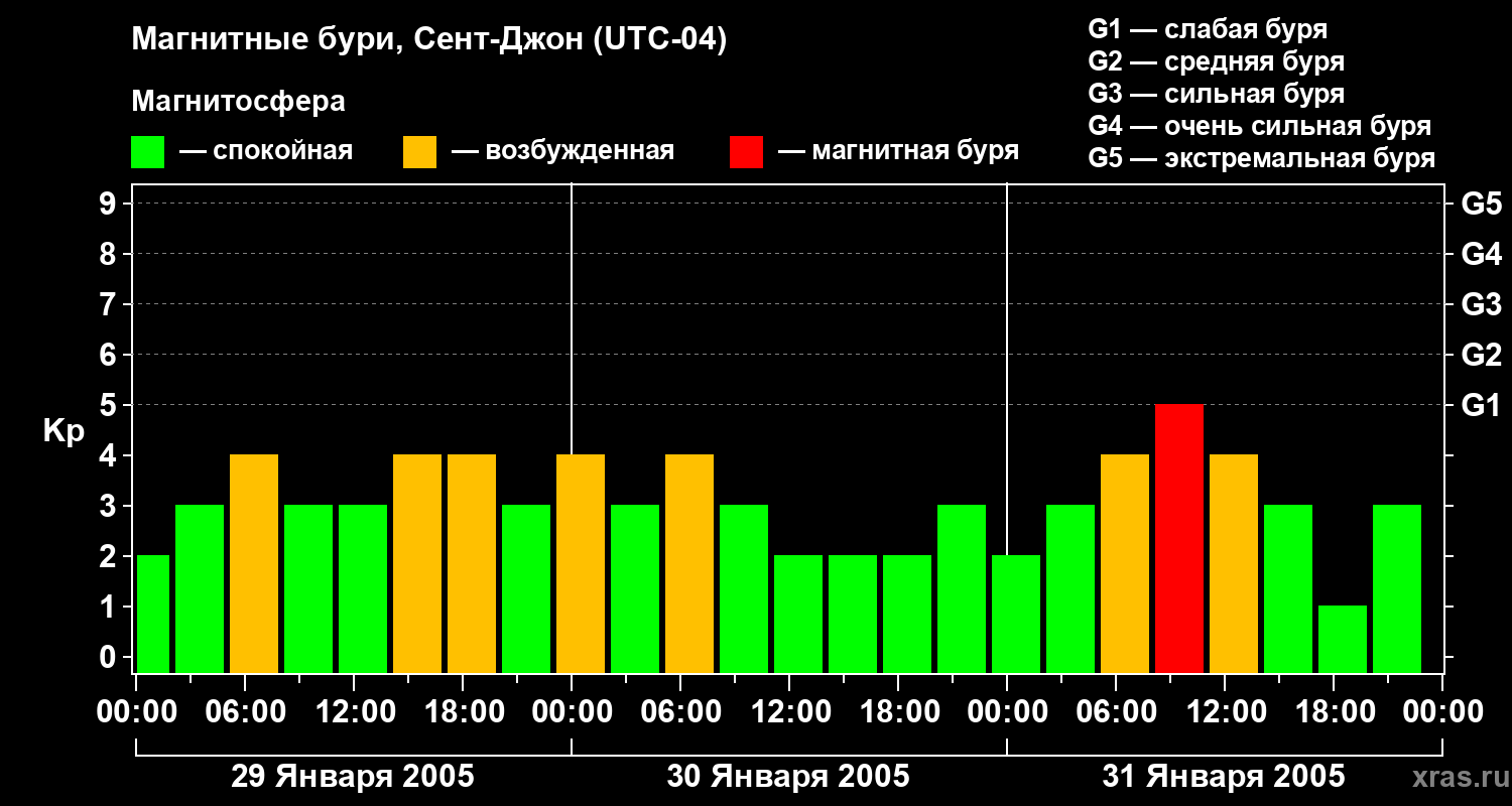 Магнитные бури в Сент-Джоне 31 января 2005 года