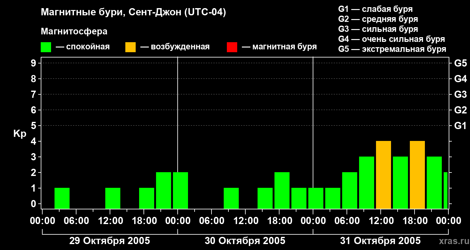 Магнитные бури в Сент-Джоне — 31 октября 2005 года