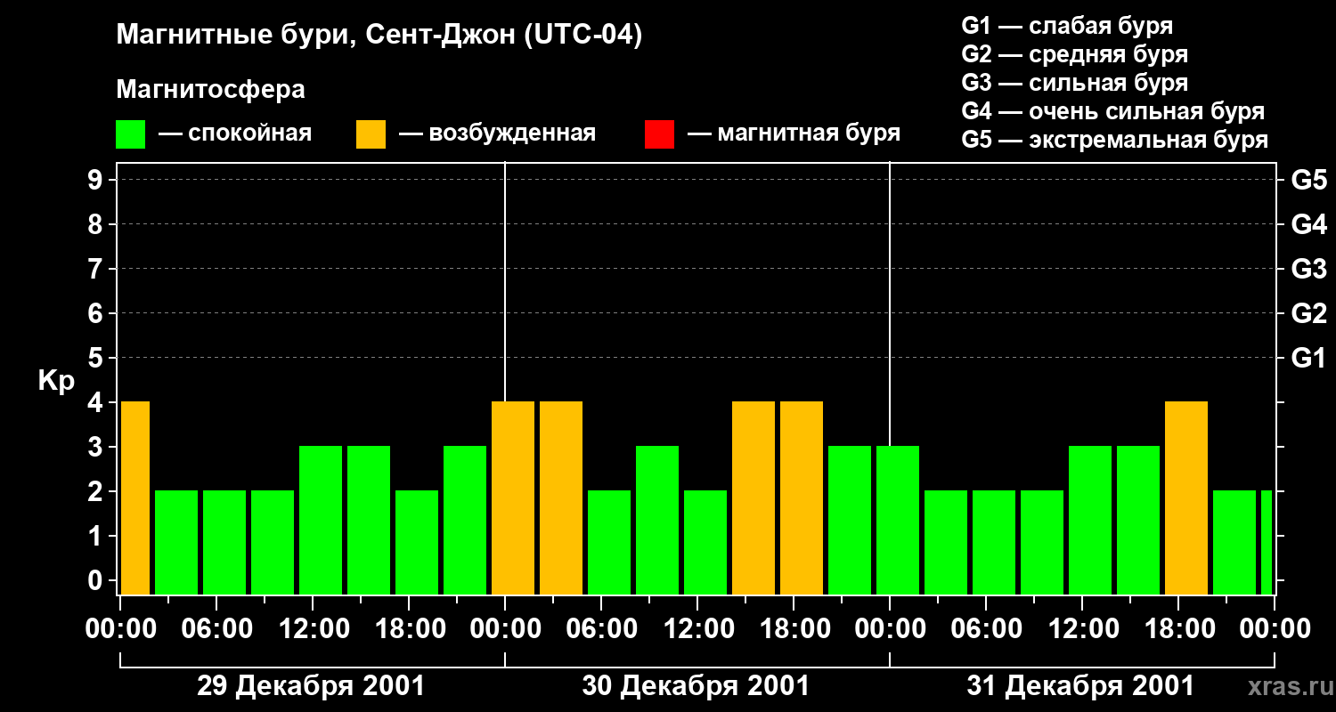 Магнитные бури в Сент-Джоне — 31 декабря 2001 года