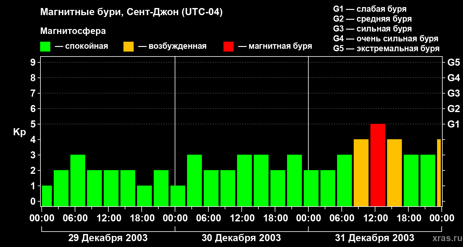Магнитные бури в Сент-Джоне — 31 декабря 2003 года