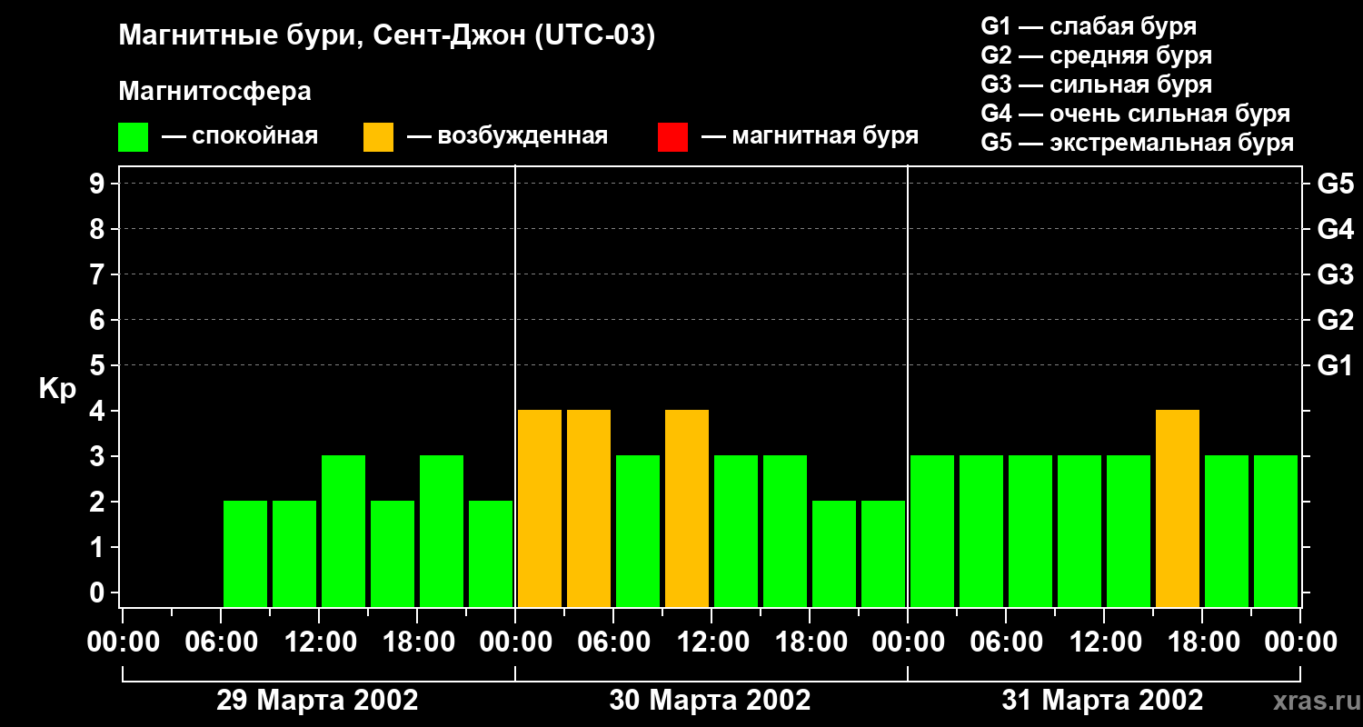 Магнитные бури в Сент-Джоне 31 марта 2002 года
