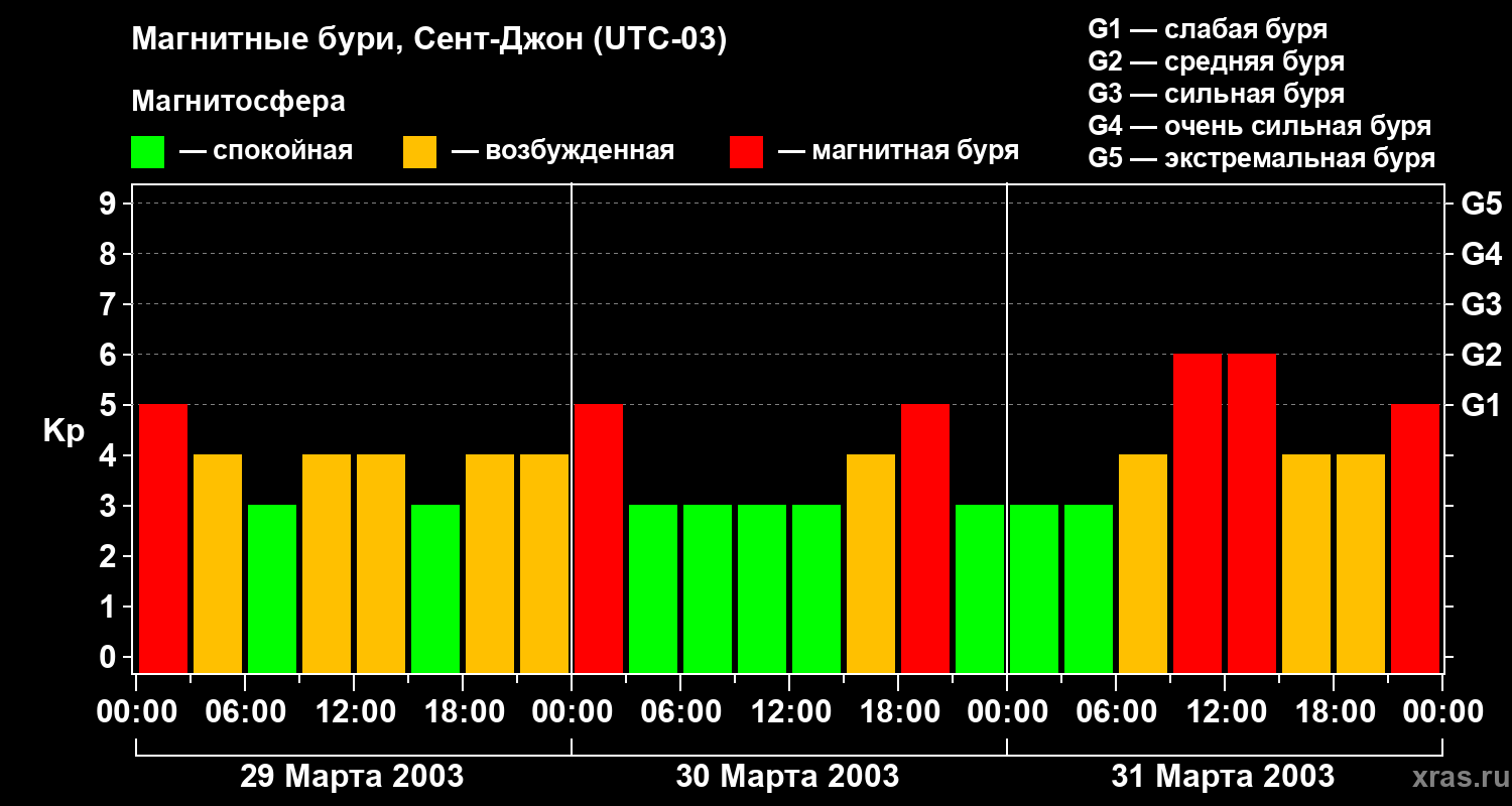 Магнитные бури в Сент-Джоне — 31 марта 2003 года