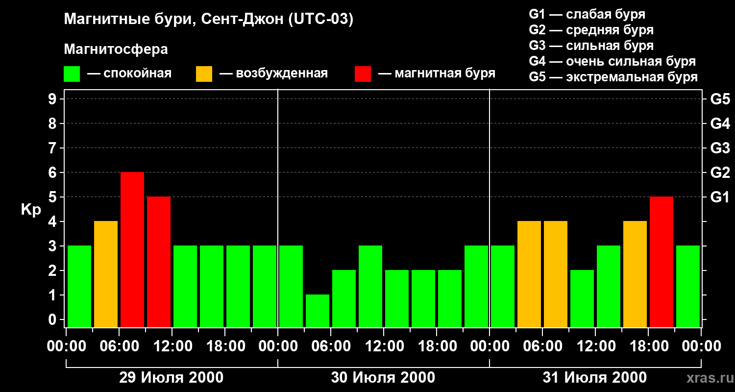 Магнитные бури в Сент-Джоне — 31 июля 2000 года