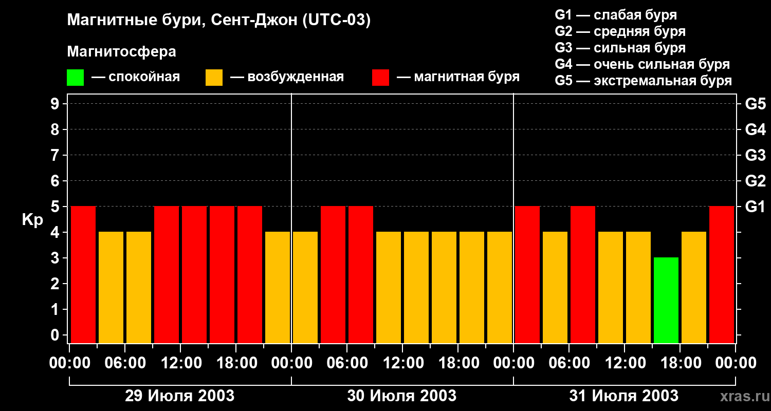 Магнитные бури в Сент-Джоне — 31 июля 2003 года