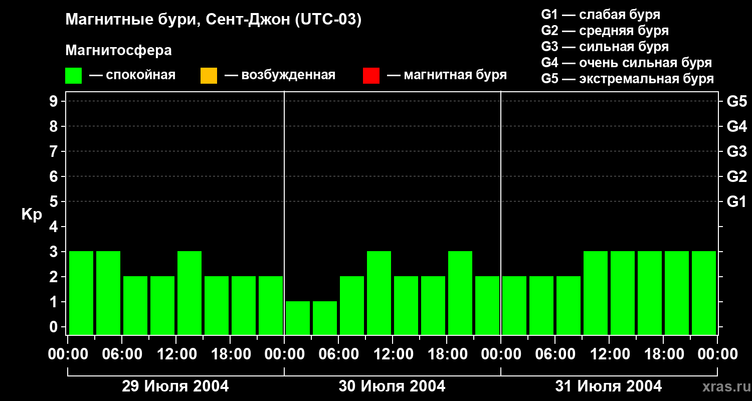 Магнитные бури в Сент-Джоне — 31 июля 2004 года