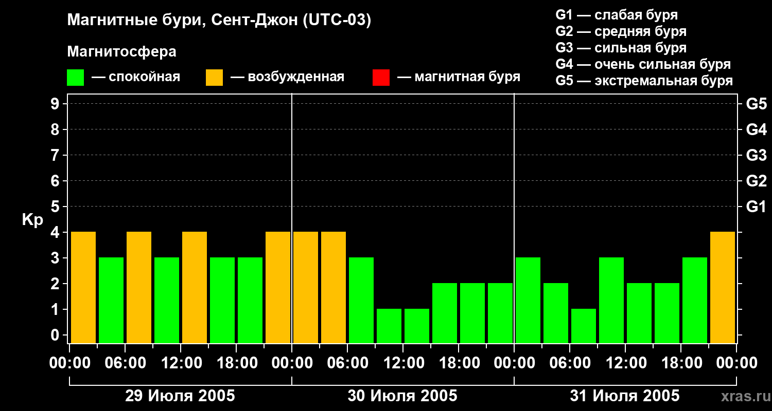 Магнитные бури в Сент-Джоне — 31 июля 2005 года
