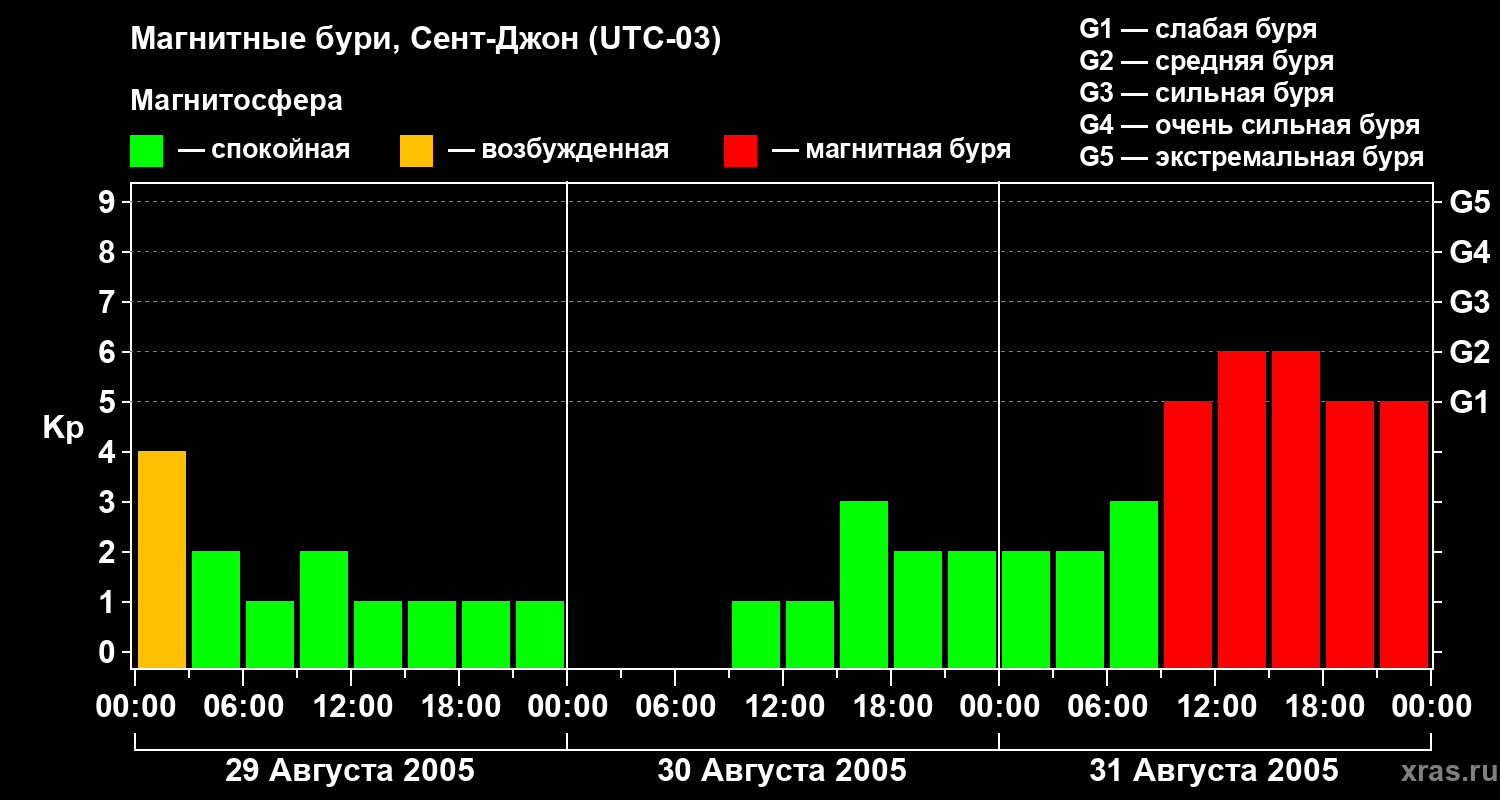Магнитные бури в Сент-Джоне — 31 августа 2005 года