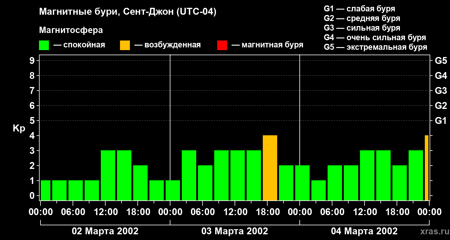 Магнитные бури в Сент-Джоне — 4 марта 2002 года