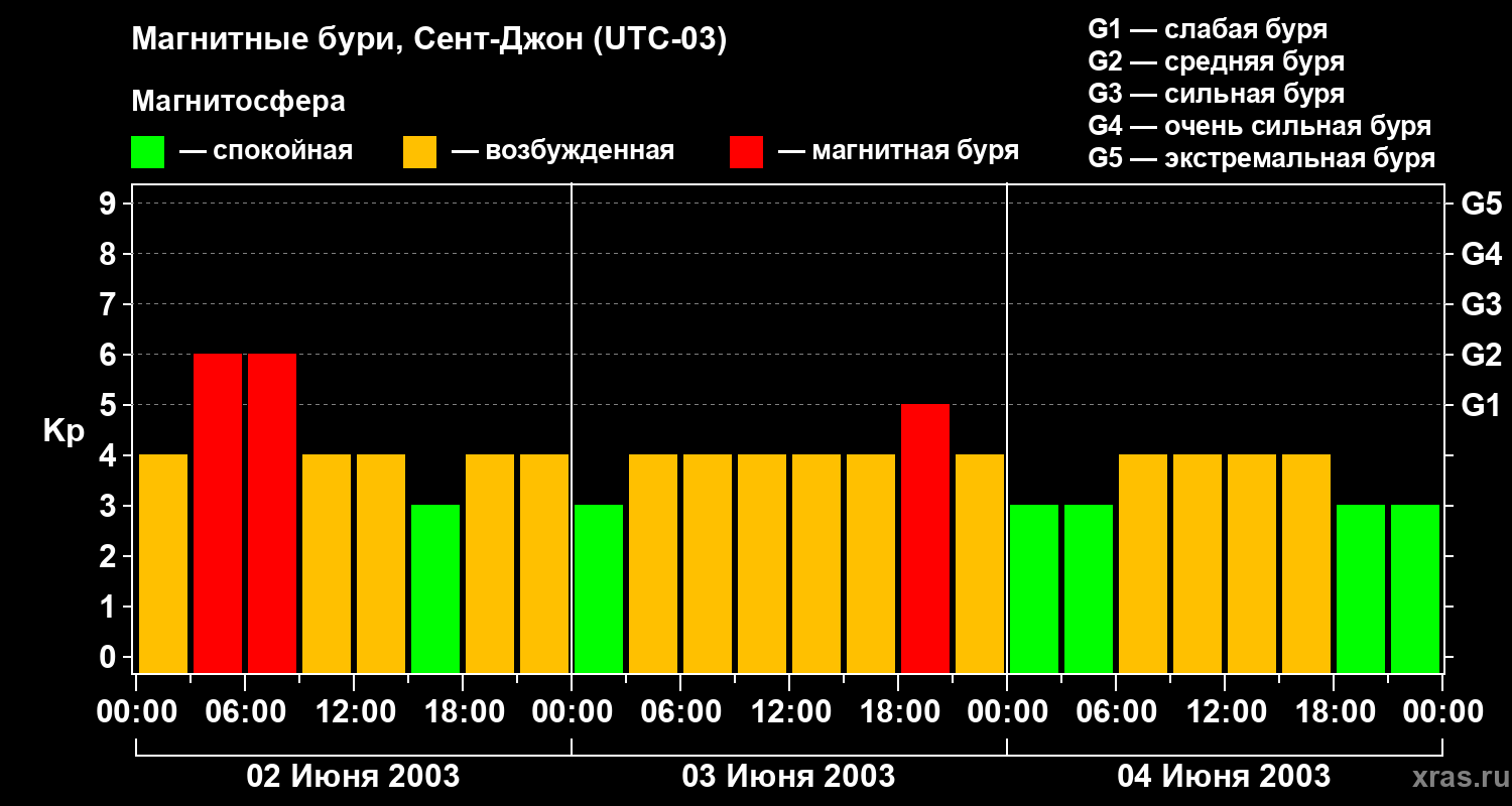 Магнитные бури в Сент-Джоне — 4 июня 2003 года